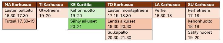 Yllä kevään 2026 aikataulu. Alla Karhusuon ryhmien lisätiedot ja ilmoittautuminen.